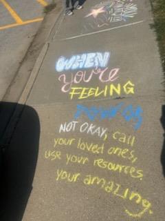 West Campus students joined the Kim Foundation's Chalk it Up event to raise suicide and mental health awareness! They spread positivity by writing uplifting messages on sticky notes and chalking inspiring words on sidewalks to encourage their peers. 💙